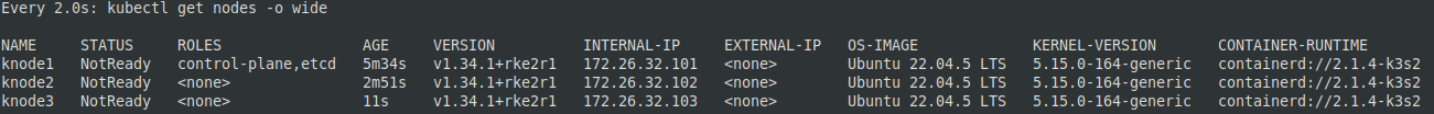 در صورتی که مراحل قسمت Worker به درستی انجام شود ، می‌توانید تمامی سرورها را در خروجی دستور kubectl get nodes -o wide مشاهده نمایید.