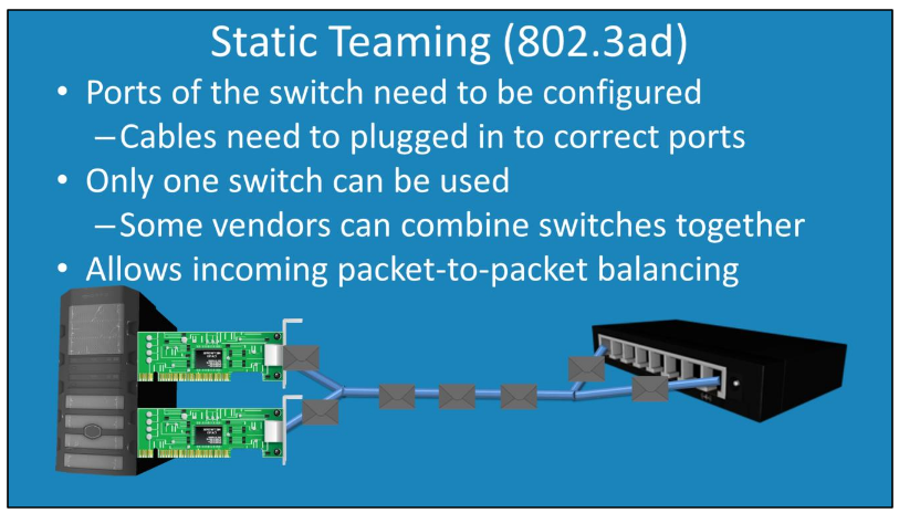 - در این حالت نیاز است پیکربندی Link Aggregation بر روی سوئیچ انجام شود.