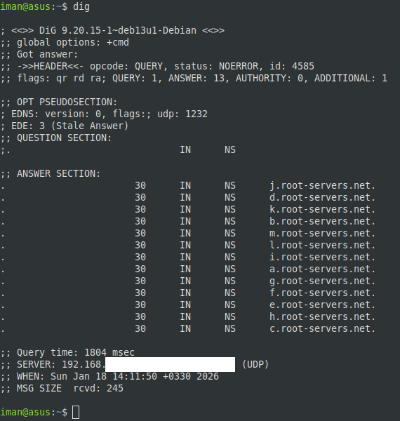 - سرور معتبر پاسخ میدهد: IP www.google.com = 142.250.185.206.