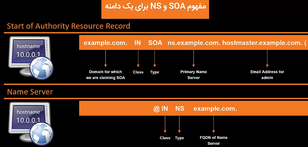 - همه سرورهای DNS برای احراز هویت و همگامسازی Zone از SOA استفاده میکنند.