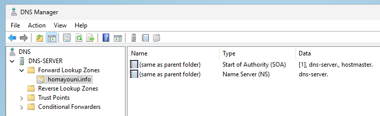 هر Forward Zone به محلی ذیل یک دامنه مثل homayouni.info یا example.com گفته میشود که تمامی انواع رکوردهای DNS قابل تعریف ذیل آن دامنه هستند. در Forward Zone وظیفهی اصلی تبدیل دامنه به آدرس IP میباشد. به عنوان مثال برای homayouni.info یک Forward Zone در یک DNS Server وجود دارد که شامل تمامی رکوردهای مربوط به این دامنه (اعم از A Record و …) مثل kb.homayouni.info و gitlab.homayouni.info و … میباشد.