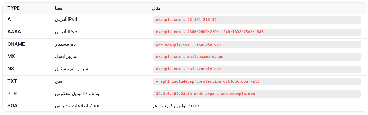 منظور از DNS Resource Types یا DNS Record Types چیست ؟